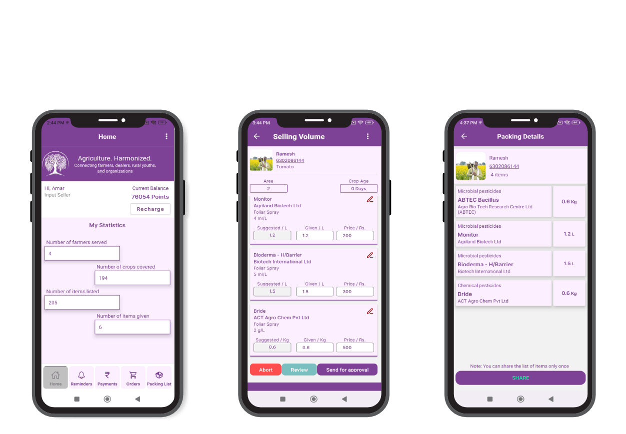 Your dealers receive direct purchase orders from your farmers generated from your advisories. They manage pricing, payment, and fulfillment, acting as the crucial local sales point.