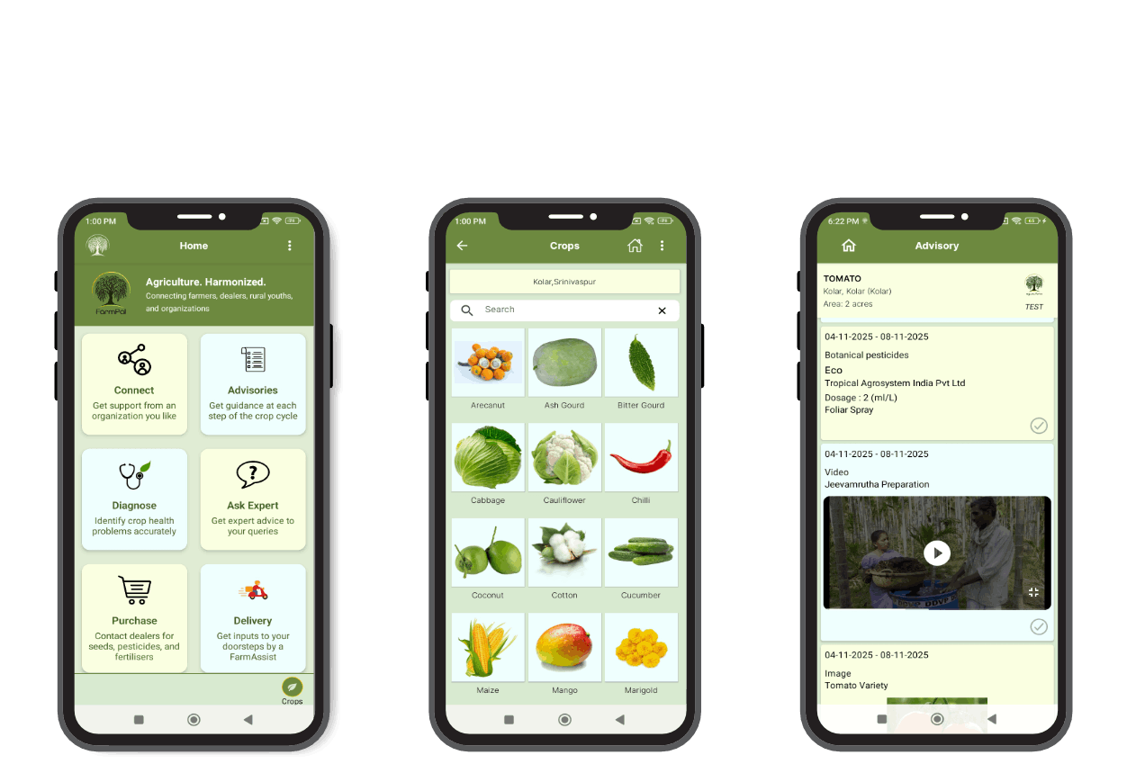 At the intersection of technology and agriculture lies the future of farming. We offer a trio of powerful, integrated mobile app suites—FarmPal, FarmPundit, and FarmAssist—designed to bring Guidance, Expertise, and Commerce directly to farmers, your team, and partners.
